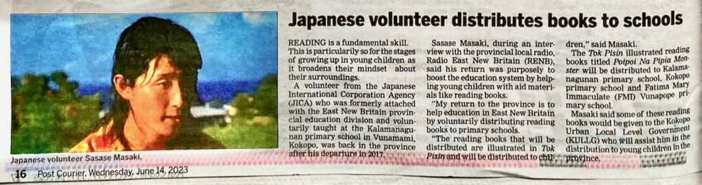 […] あわせて読みたい 🇵🇬#14 ラジオ&新聞で紹介!(PNG Kamishibai PJ) 今日は、代表の私、笹瀬正樹が個人で取り組んでいる、 パプアニューギニア KAMISHIBAI プロジェクト※略して「PNG K […]